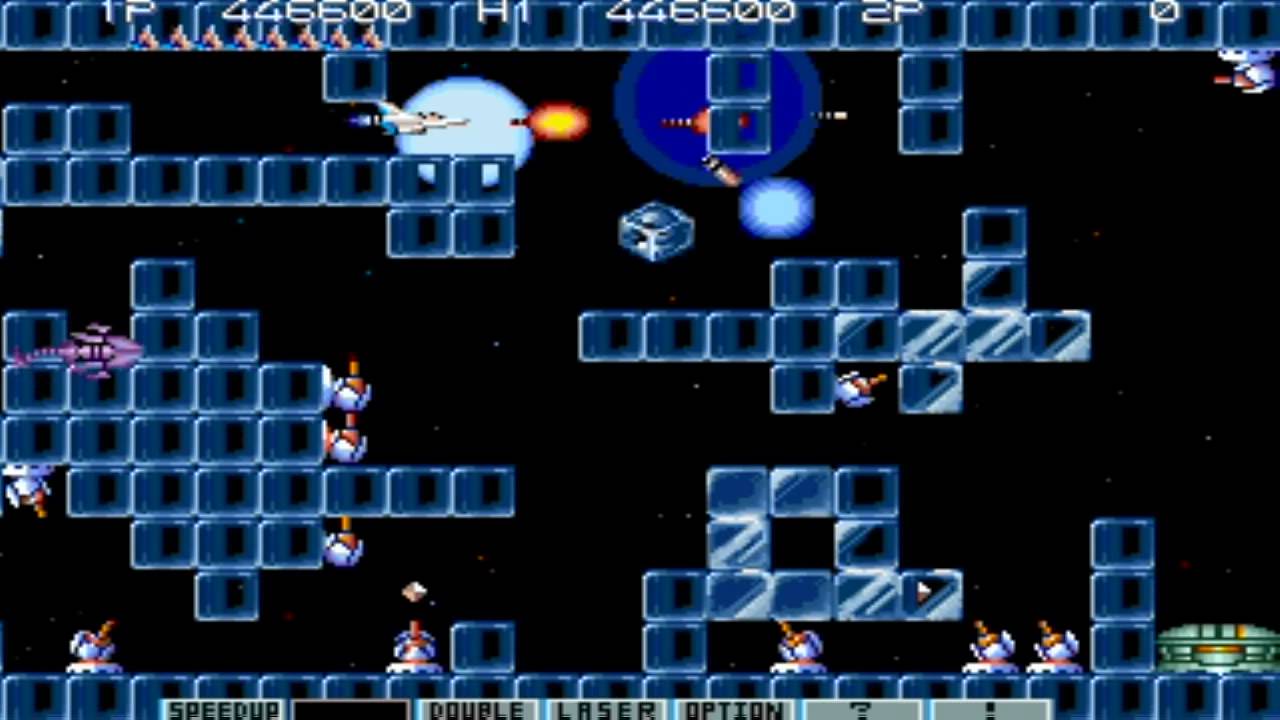 Maybe you'd be able to stack multiple fields?N/AThe last unused power-up that was later added to the SNES port. The shields rotate. Whoa.N/AAn interesting concept that never made it to any Gradius game: These Shields would actively home in on and destroy enemy bullets.EnemiesNew Enemies. In the final game, there are two different enemies that come out of the silver hatches in the final stage.